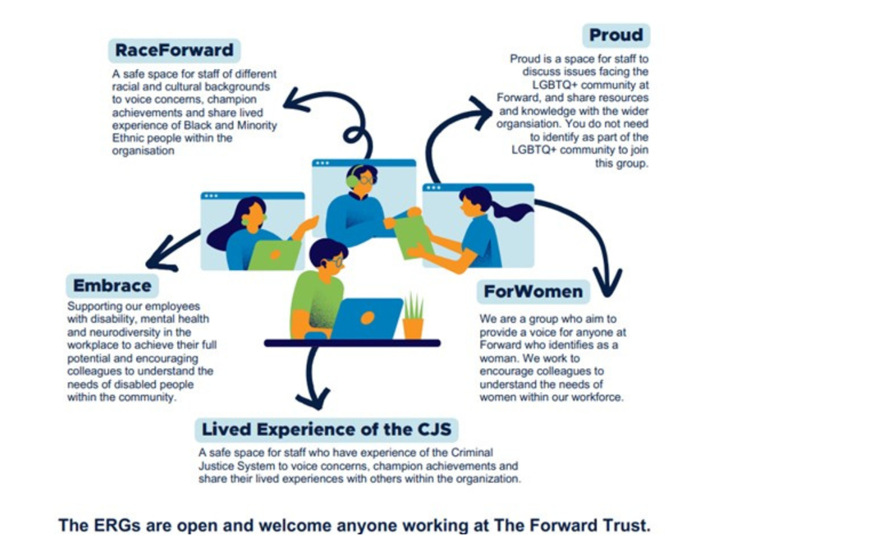 Employee Resource Groups are open to all staff at The Forward Trust. We strongly encourage allies to take an active role in our ERGs, helping us build an environment of diversity, equality, and inclusion.